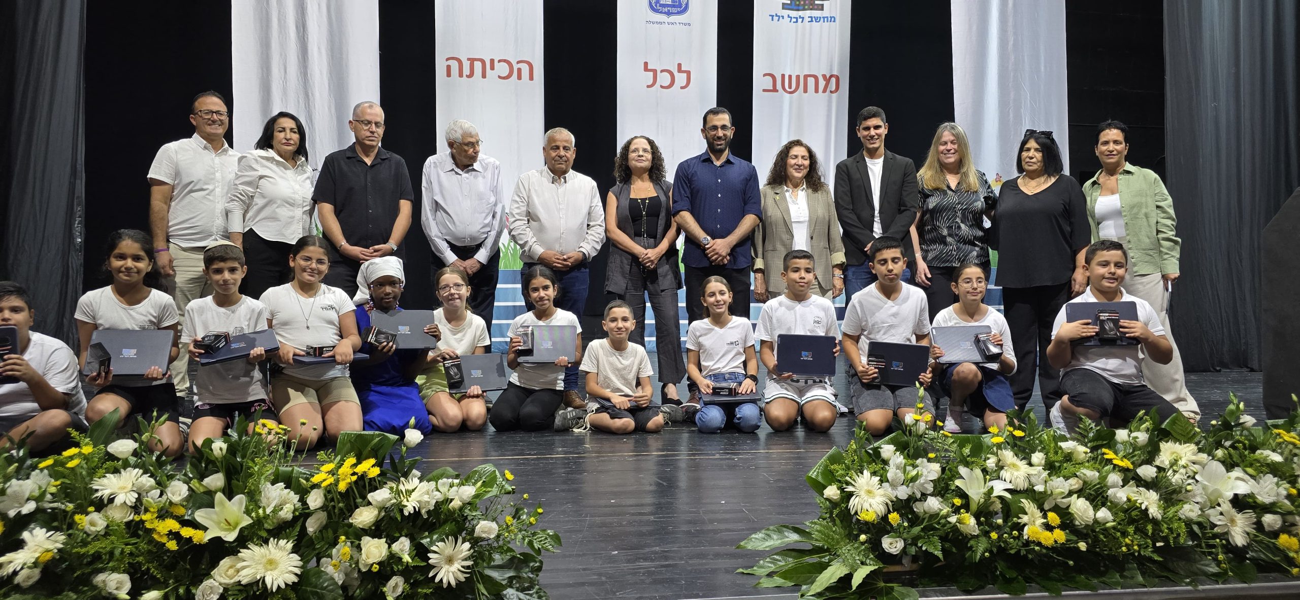 568 תלמידות ותלמידים מ-13 בתי ספר בדימונה הצטרפו בטקס חגיגי שהתקיים ב 8.9.24 יום א', לתוכנית "מחשב לכל...